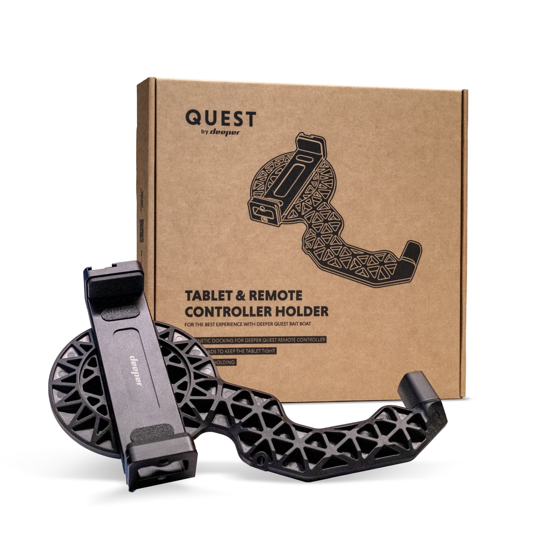 Upgrade your Deeper Quest experience with our premium Tablet and Remote Controller Holder, crafted from high-grade anodised aluminium and glass-reinforced ABS plastic for exceptional durability and sleek aesthetics. Designed specifically for anglers who prefer using larger screens on the bank, this holder combines robust construction with modern design to enhance your Quest.